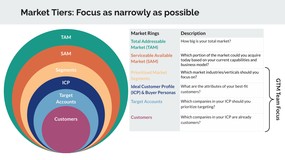 That's where the magic of the market tiers comes in. This simple visual can align your teams on how to think about the general segmentation of your market.