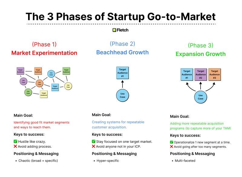 Let's break down the three phases of startup go-to-market and why understanding them is crucial for your success.